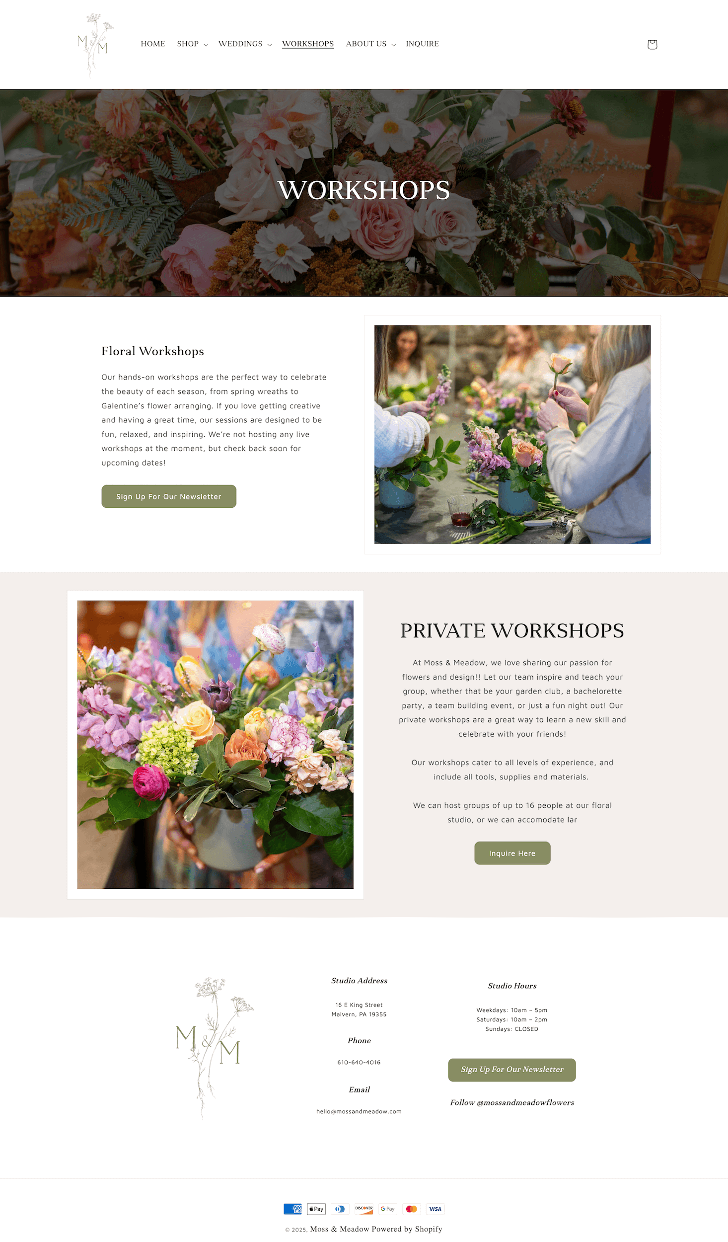 Moss & Meadow, based in Malvern, creates thoughtful, garden-inspired floral arrangements and locally crafted gifts that celebrate life and community. Foss Studio partnered with them to build a custom Shopify site for their e-commerce needs and refresh their Showit website with new pages and design updates. Our work helped showcase their updated brand while providing a seamless online experience for customers. The result is a digital presence as personal and intentional as their floral designs.